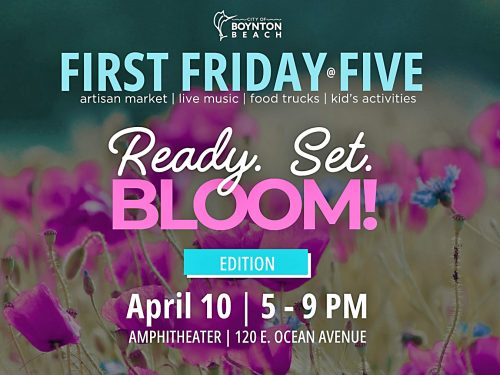 The City of Boynton Beach continues to offer a free concert series on the First Friday at 5 p.m., monthly through November, 2026, however due to Good Friday, the April event will be held on the 10th. Since spring is in full swing, and it’s time to celebrate with a vibrant, bloom?themed event. READY. SET. …